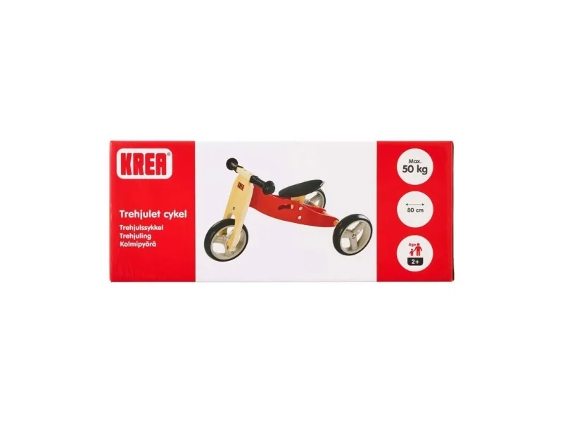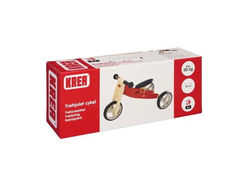 Högkvalitativa KREA trehjuling i björkplywood med EVA och ABS-hjul. Cykeln kan enkelt förvandlas från trehjuling till balanscykel. Sätets höjd är justerbart mellan 26 cm och 29,8 cm. Trehjulingen är utmärkt för att öva barnens motoriska färdigheter samtidigt som de förbättrar balansen. Max-vikt 50 kg.