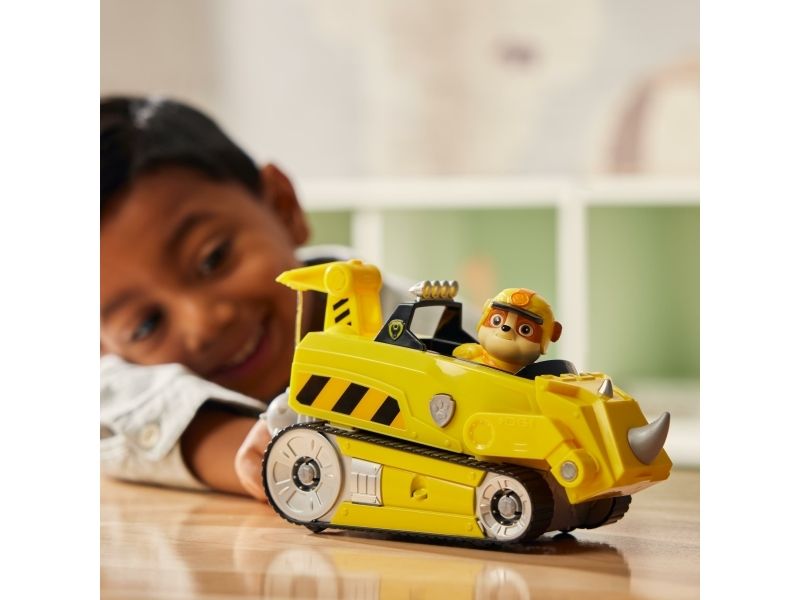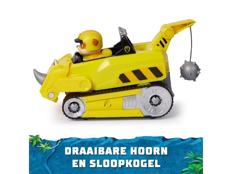 Rubbles fordon har en spännande transformering till räddningsläge. Tryck på PAW-märket på hans fordon för att rotera skoveln och exponera noshörningshornet, öppna sedan facket baktill på fordonet och lyft kranarmen för att använda rivningskulan och fullfölja transformeringen. Använd rivningskulan och hornet för att rensa bort alla hinder och rädda dagen. För ännu mer kul och spännande PAW Patrol-inspirerade uppdrag, samla alla PAW Patrol Jungle Pups-leksakerna och PAW Patrol: The Mighty Movie-leksakerna, som fantastiska Aircraft Carrier HQ och alla specialutgåvor av PAW Patrol-leksaker för flickor och pojkar, som Mighty Pups, Aqua Pups och Big Truck Pups leksaksfigurer och lekset (vart och ett säljs separat). Med PAW Patrol-leksaker kan förskolebarn använda sin fantasi och utveckla sina motoriska färdigheter genom låtsaslek när de återupplever sina favoritscener från serien. Ha kul på oändliga PAWsome äventyr med Rubble och hans Jungle Pups noshörningsfordon.
