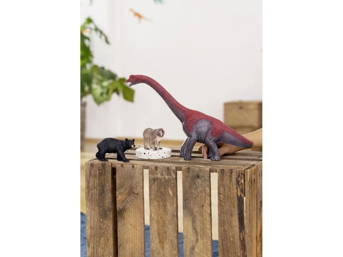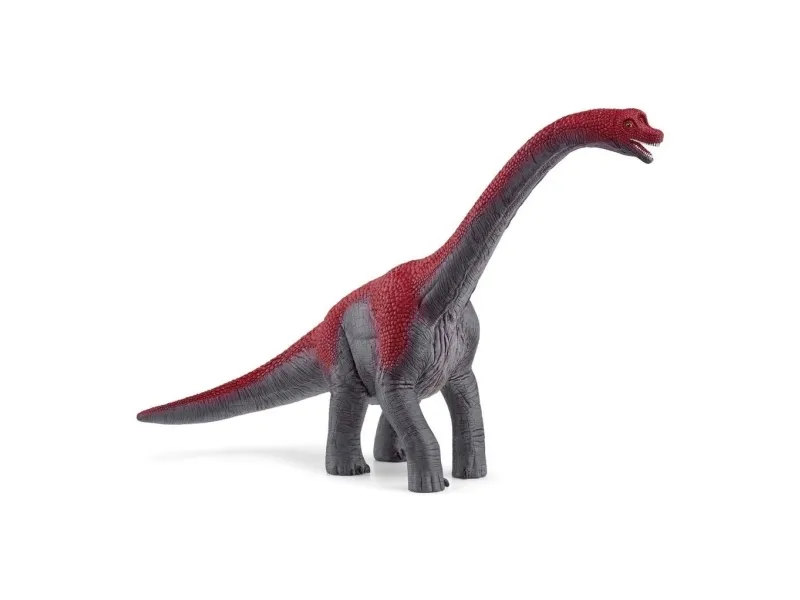 Den enorma brachiosaurusen syns på långt håll: Den är hög som ett hus och den långa halsen sticker upp ovanför trädtopparna. Vad gör den där egentligen? Med sina vassa tänder plockar den blad och kvistar från grenarna. Den blir sällan störd mellan måltiderna, inte bara på grund av dess storlek. Den förhistoriska jätten är täckt av eldröd ödlehud från huvudet och ända till svansspetsen. Det är ett smart sätt för brachiosaurusen att hålla angripare på avstånd. Men som vegetarian är den inte alltid på humör för att slåss.