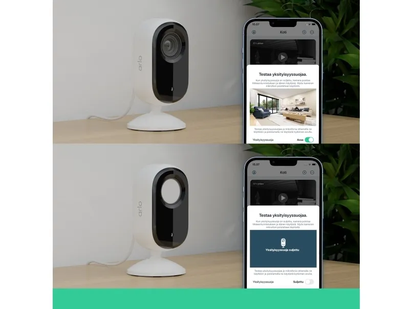 Protect any room within your home using the 2nd Generation Essential Indoor Camera. It comes equipped with an Automated Privacy Shield, ensuring your personal moments remain completely private.