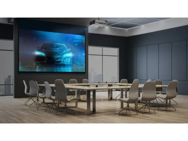 Discover the Optoma CinemaX projector, a high-performance solution designed for both presentation and multimedia use. This digital projector shines with its 7000 lumens brightness, ensuring that your images remain vivid and clear, even in well-lit environments. With a dynamic contrast ratio of 300000:1 and native WUXGA resolution, it delivers exceptionally sharp and detailed images, making it perfect for professional presentations, movies, and more.