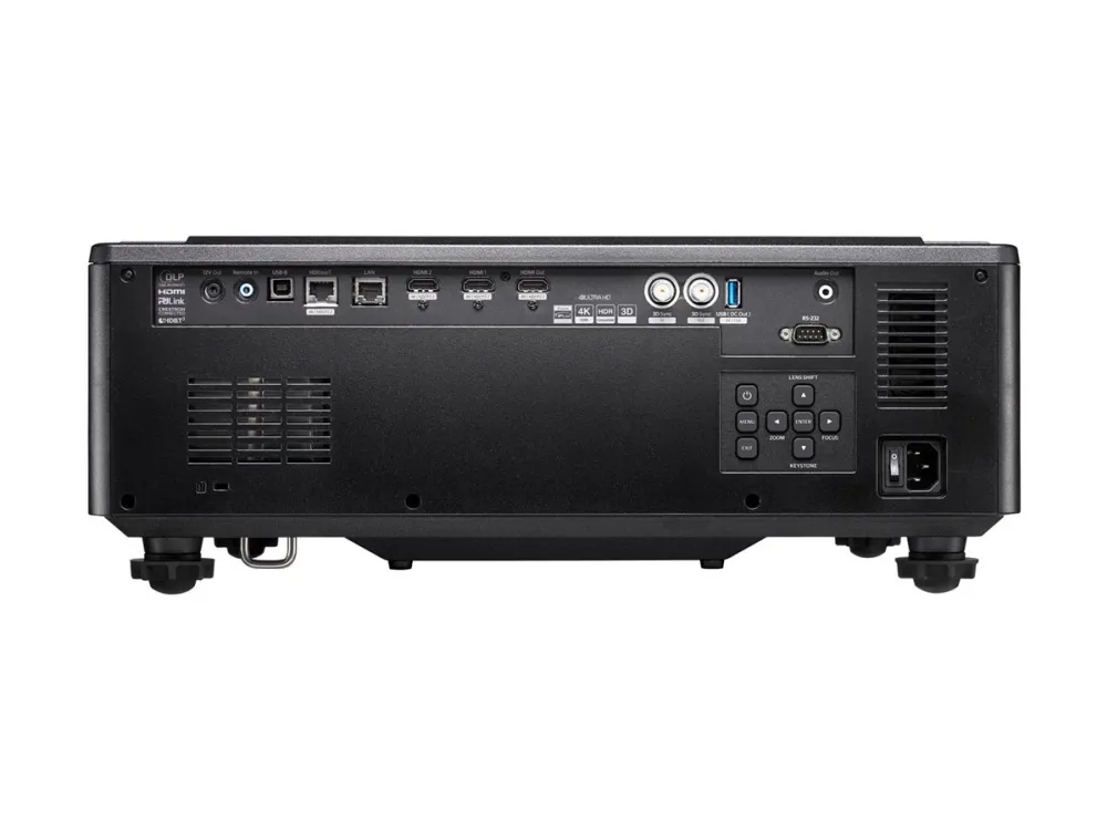 2 x HDMI-ingång - 19-stifts HDMI typ A 1 x USB (service) - 4-stifts USB typ B 1 x 3D-synk in 1 x fjärrkontrollingång 1 x HDMI-utgång - 19-stifts HDMI typ A 1 x USB (endast ström) - 4-stifts USB typ A 1 x linjeutgång för ljud - mini-phone stereo 3.5 mm 1 x 3D-synkroniserad utmatning 1 x HDBaseT - RJ-45 1 x nätverk - RJ-45 (hantering) 12V programmerbar avtryckare 1 x administration - RS-232