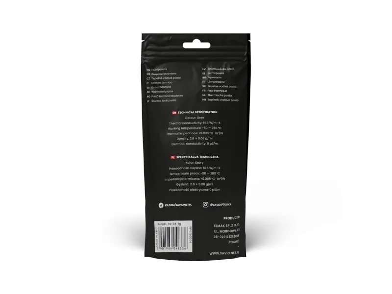 TG-04 from Savio comes in two different weights: 1 g and 2 g. Thanks to the specially designed packaging, you are assured that the paste will not dry out after use. The product is designed for repeated use without fear of wasting it due to improper storage.