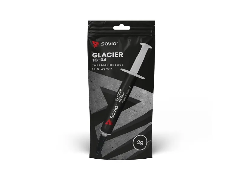 GLACIER 1 g TG-04 thermal grease, thanks to its consistency, ensures trouble-free application even for those without experience. Properly balanced density and packaging in the form of a practical syringe guarantee the easy application of the product on the processor. The kit comes with a practical spatula that will help in effective and precise application.