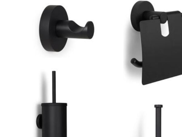 BLUE LABEL badrumstillbehör matt svart – toapappershållare, toalettborste, handdukskrok samt hållare för extra papper