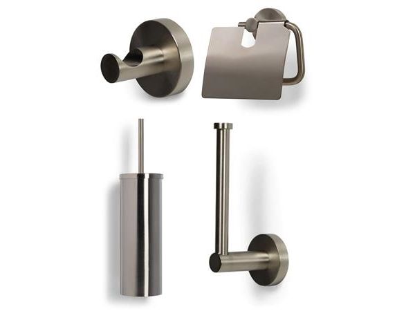 BLUE LABEL badrums­tillbehör borstad nickel – toalettrullhållare, toalettborste, handdukkrok samt hållare för reservpapper