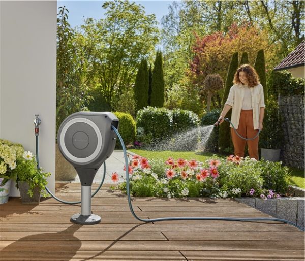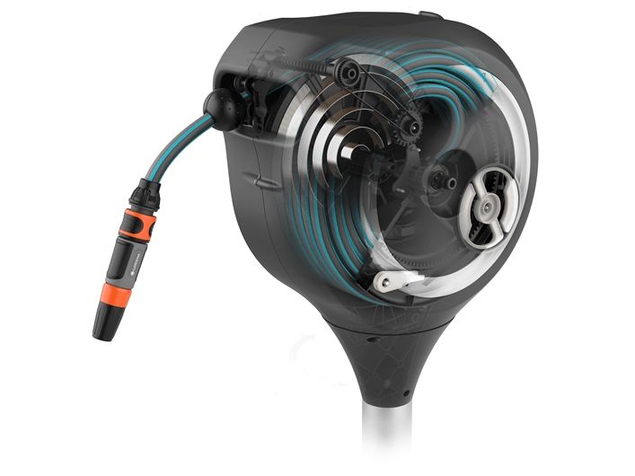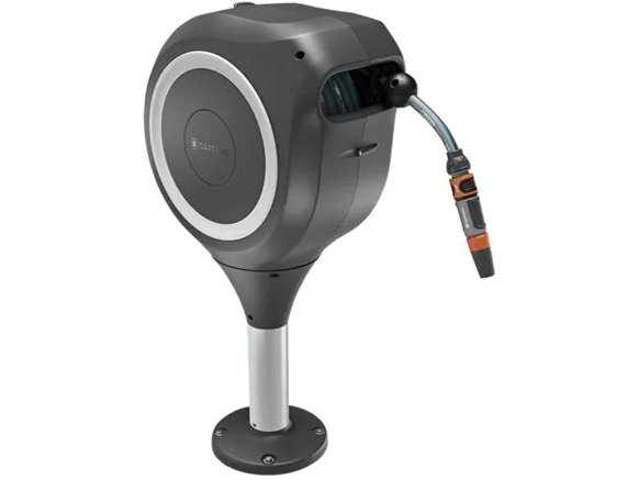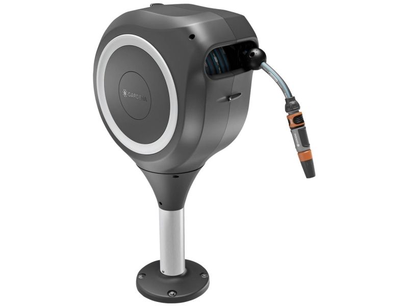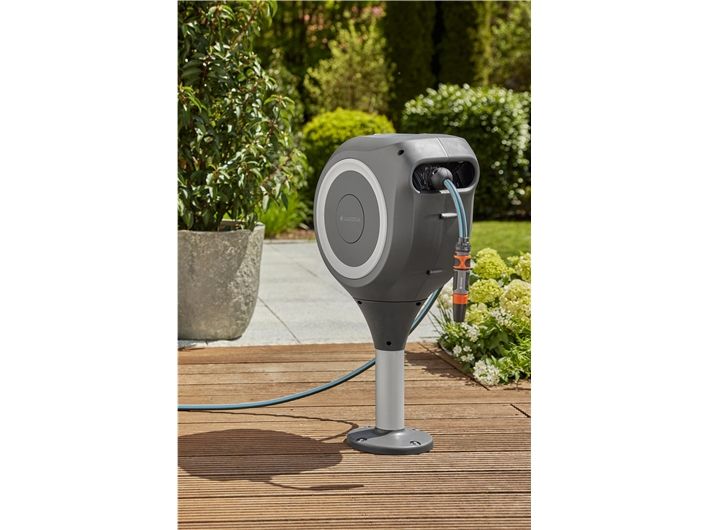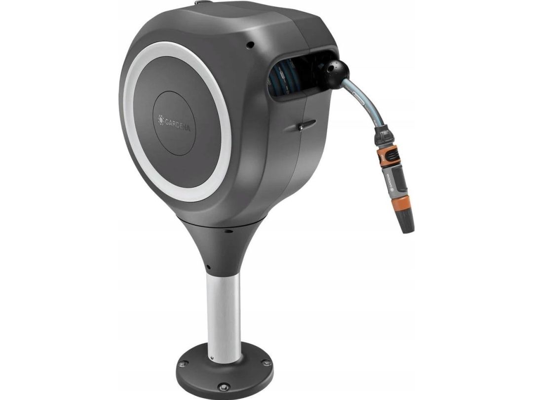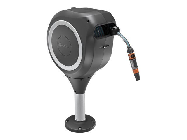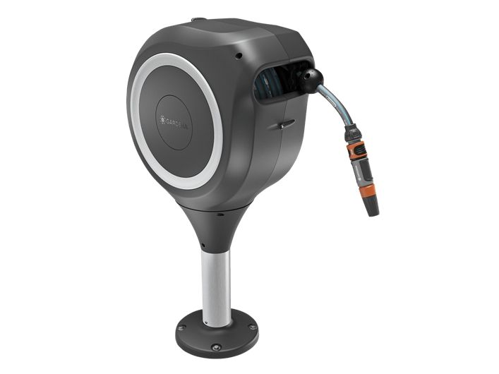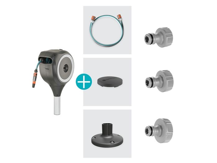 Slang (11 mm x 20 m), anslutningsslang (1,5 m), tryckkontakt, slangkontakt, vattenspärr, rengöringsmunstycke, fästanordningar