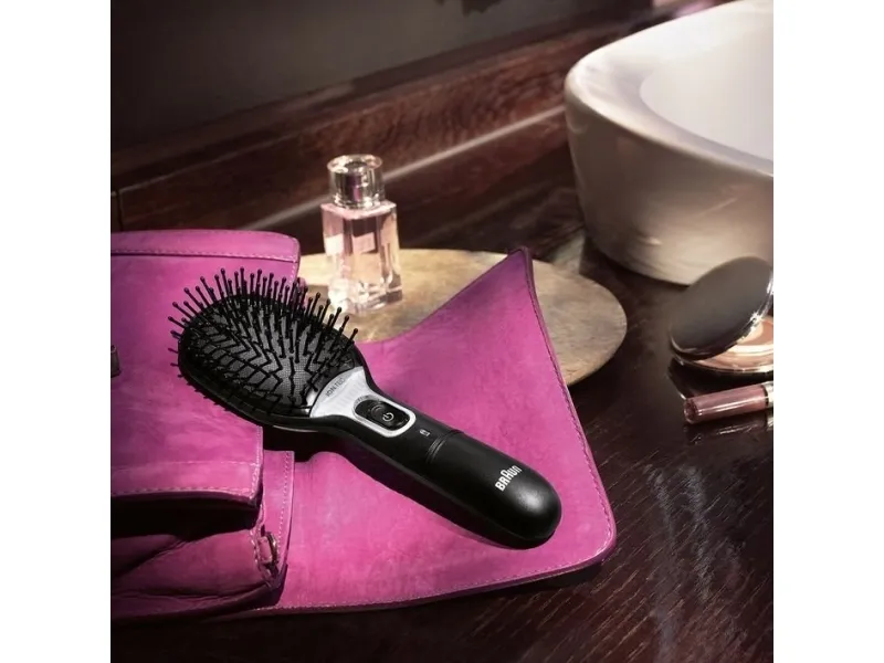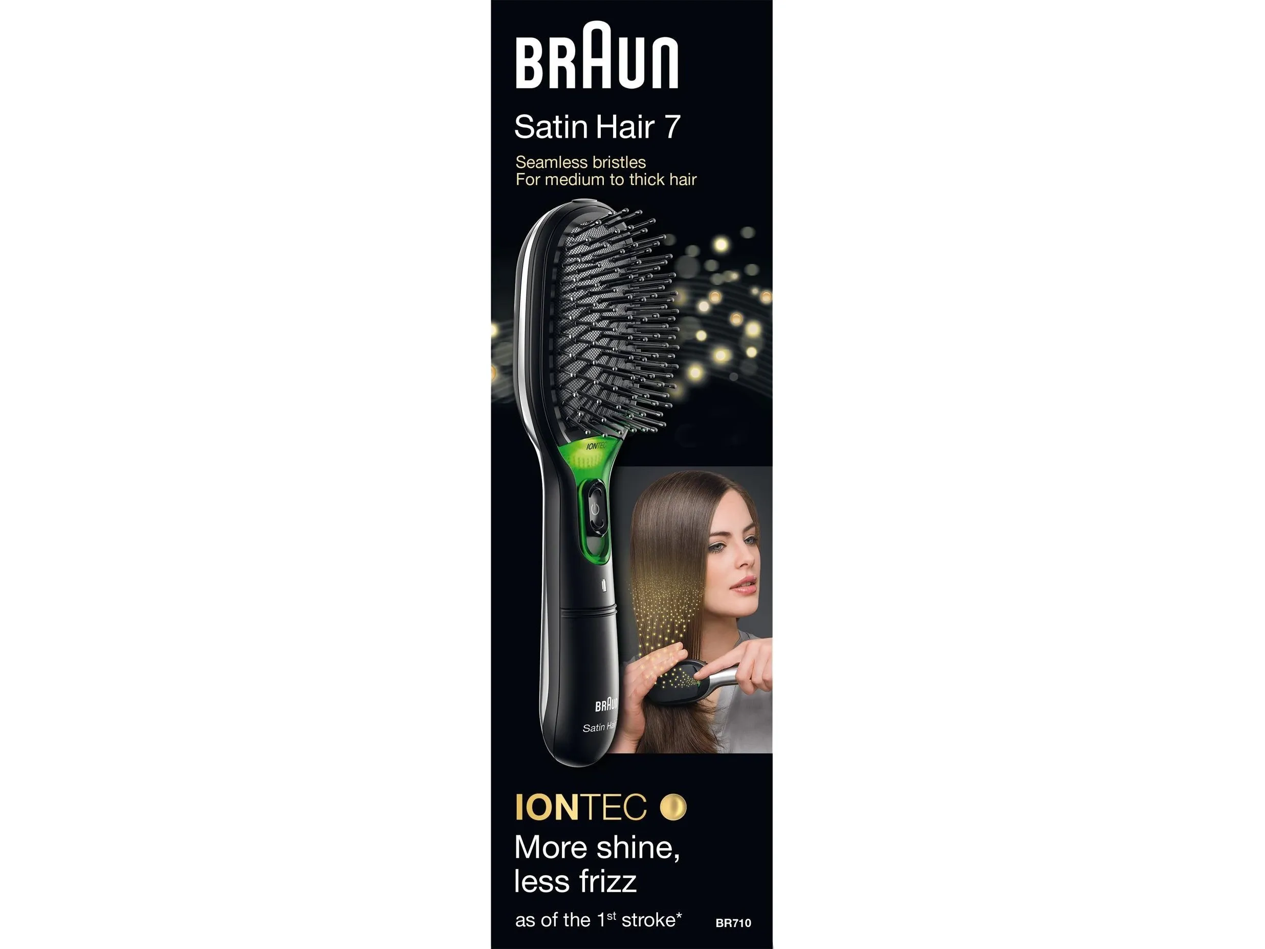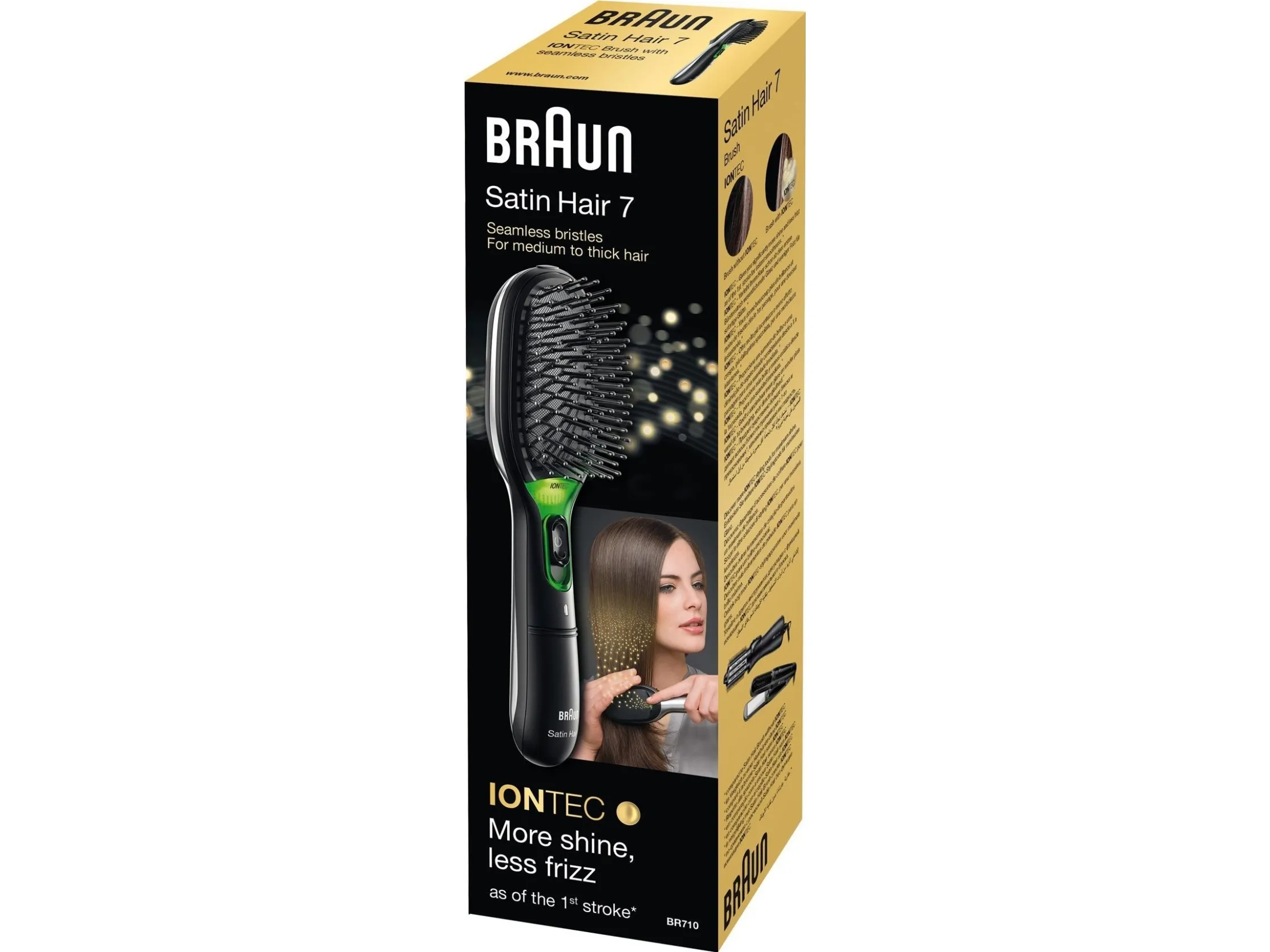 Braun Satin Hair 7. Suitable for: Adult, Type: Paddle hairbrush, Product colour: Black. Width: 235 mm, Depth: 68 mm, Height: 63 mm. Quantity per pack: 1 pc(s)