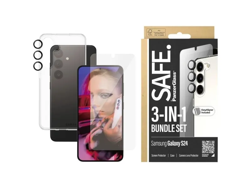 SAFE. by PanzerGlass - 3-i-1-paket - baksidesskydd för mobiltelefon - termoplastisk polyuretan (TPU), plast - transparent - för Samsung Galaxy S24