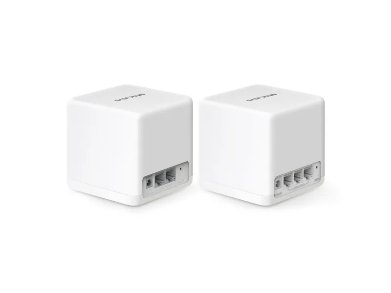 The Halo Whole Home WiFi kit includes multiple units to fit any house type. If that’s not enough, you can expand Mesh WiFi coverage anytime by simply adding more Halos.Mercusys AX1500 Whole Home Mesh WiFi 6 System. Product colour: White, Antenna type: Internal, Product type: Mesh system. Wi-Fi band: Dual-band (2.4 GHz / 5 GHz), Top Wi-Fi standard: Wi-Fi 6 (802.11ax), WLAN data transfer rate (max): 1500 Mbit/s. Firewall security: SPI Firewall. Width: 88 mm, Depth: 88 mm, Height: 88 mm. Number of units included: 2 pc(s)