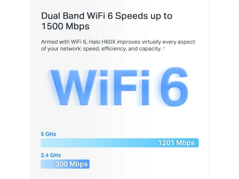 Dual Band WiFi 6 Speeds up to 1500 Mbps
