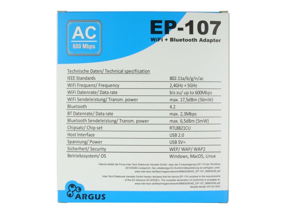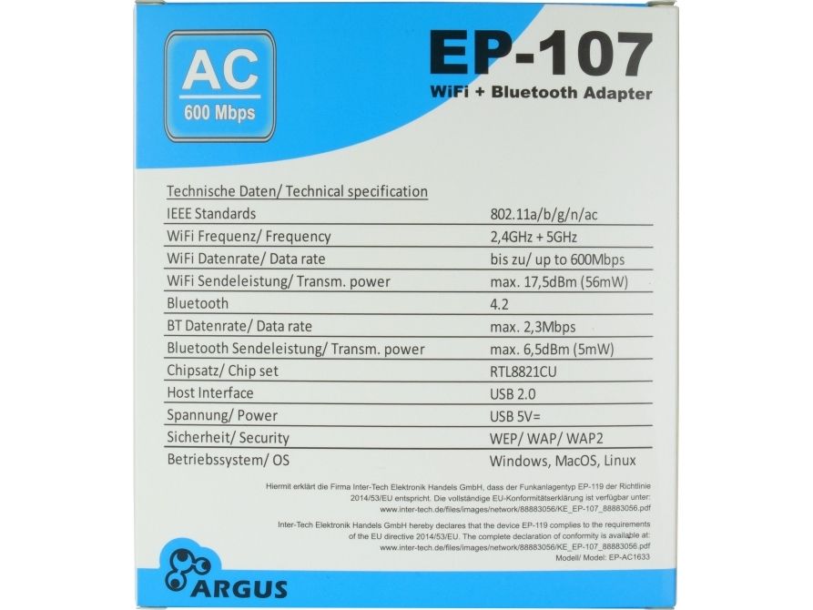 USB Adapter EP-107 Wi-Fi och BT4.2 NT Argus,USB2.0,600Mbps