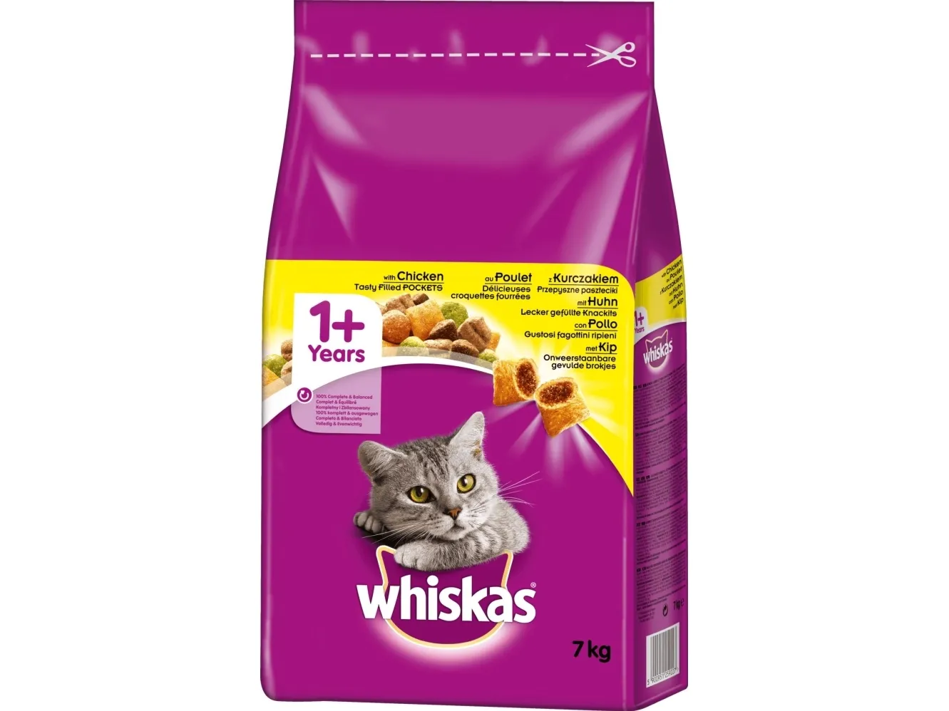 WHISKAS Cat Adult med kyckling - torrfoder för katter - 7 kg