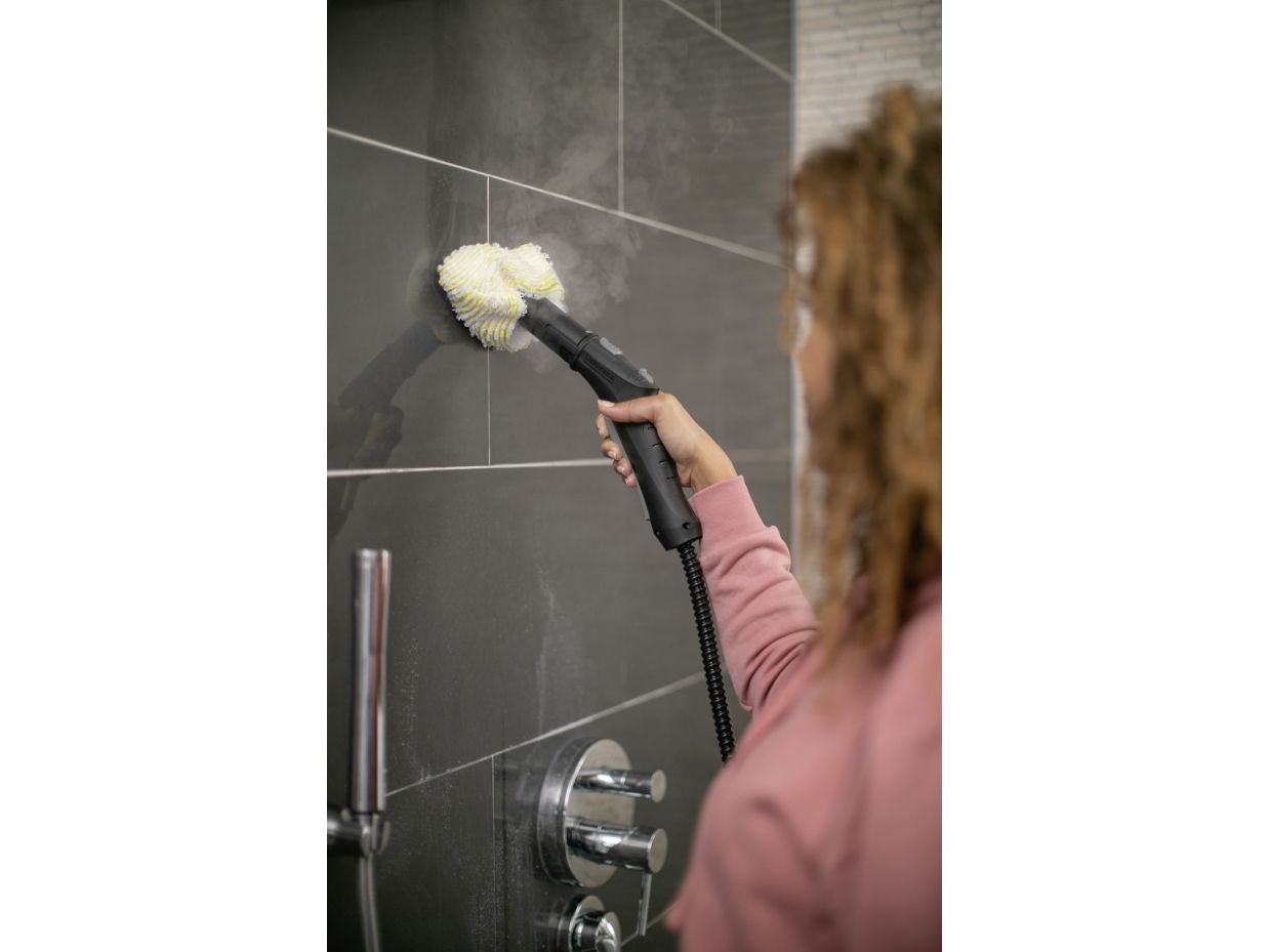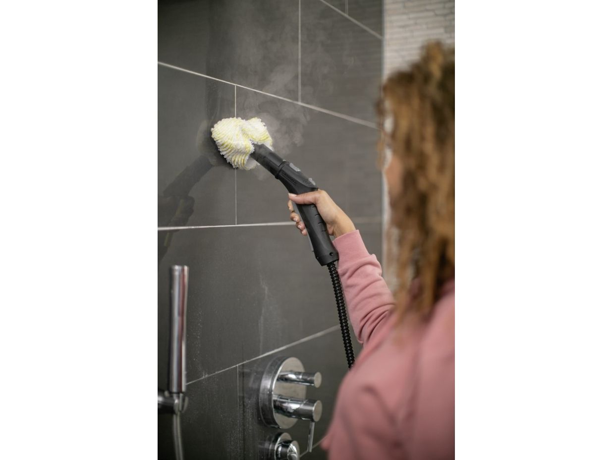 Kärcher SC 2 EasyFix ångrengörare är en rengöringslösning i kapselform som är utformad för att ge effektiv rengöring av olika ytor. Med en tankkapacitet på 1 liter och ett ångtryck på 3,2 bar ger den kraftfull ångrengöring och uppnår en yta på 75 m2/h. Den integrerade tillbehörsförvaringen håller alla verktyg organiserade för enkel åtkomst under rengöringsarbetet. SC 2 EasyFix värms upp på 6,5 minuter och ser till att rengöringen kan påbörjas direkt. Medföljande verktyg som rundborste, golvmunstycke, golvduk, handmunstycke och EasyFix-munstycke ger mångsidighet och effektivitet, vilket gör den idealisk för att ta itu med smuts i olika delar av hemmet. Med en 4 m lång sladd och exakta kontroller på handtaget kan användarna njuta av problemfri manövrerbarhet och ångkontroll för anpassade rengöringsresultat.