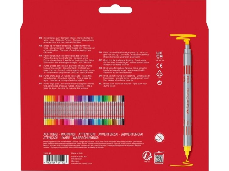 Faber-Castell dubbla fiberpennor 40-pack med tjock och tunn spets 3-5 1 mm tvättbara