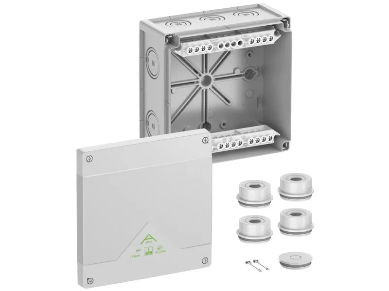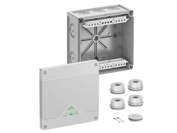SPELSBERG Afgreningskasse, Kapslingsklasse IP55/IP66, Max. 16², Slagstyrke IK07, Beskyttelsesklasse II