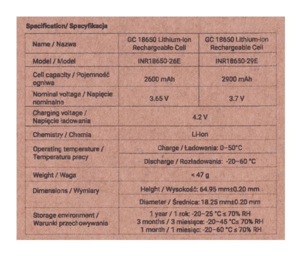 50x battericell Žalias Cell 18650 Li-jon INR1865029E 3,7V 2900mAh