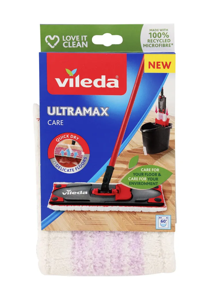 Ultramax Care Microfibre Refill fra Vileda er en mikrofiber refill med god sugeevne. Det betyder at der efterlades mindre vand på gulvet, hvilket bidrager til en mere skånsom rengøring af for eksempel sarte trægulve.