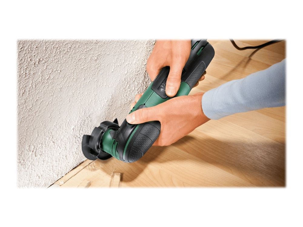 Versatile and easy to handle, this multifunction tool is the ideal choice for a wide range of DIY jobs. Its motor delivers the power necessary while electronic speed pre-selection enables material-specific working.