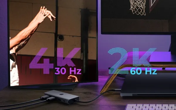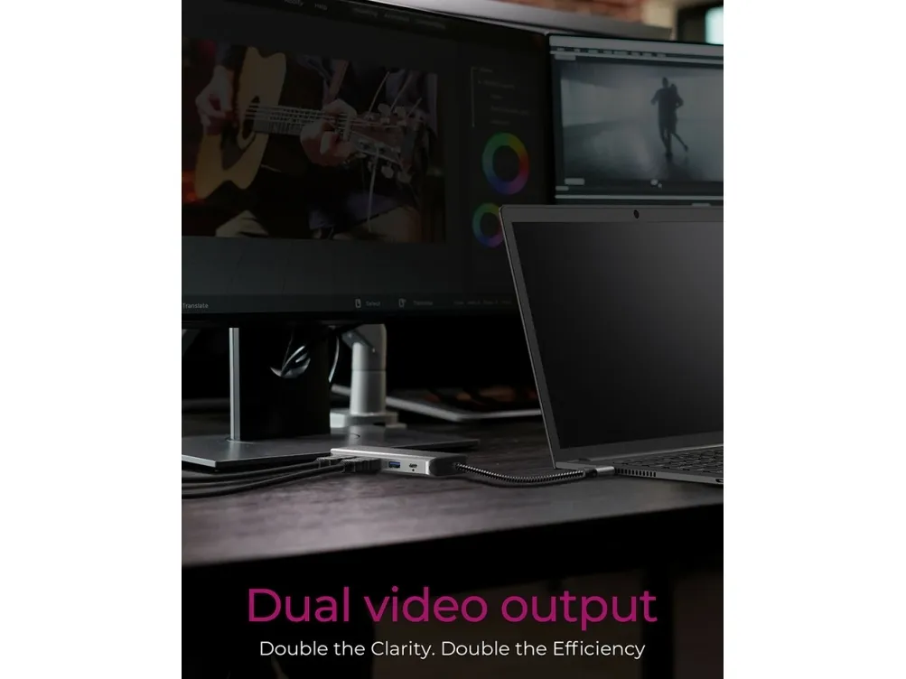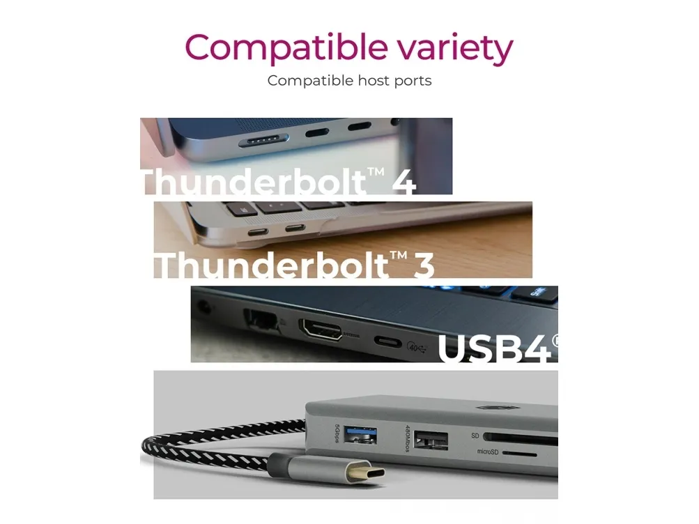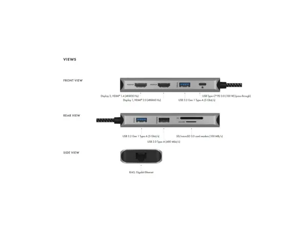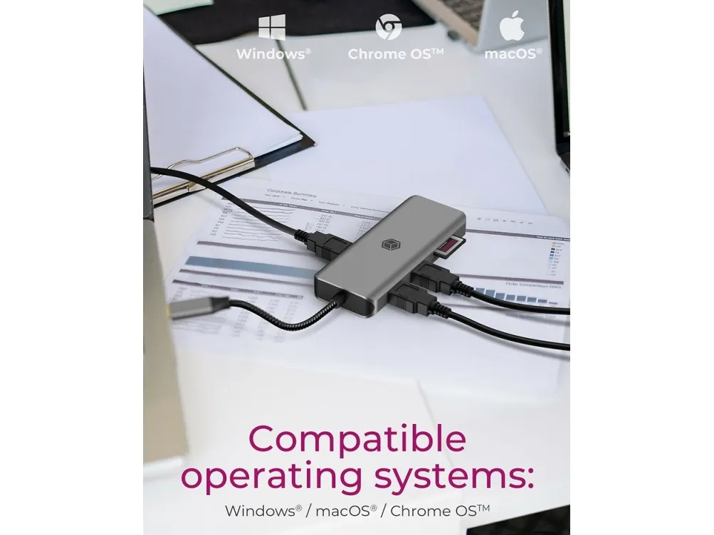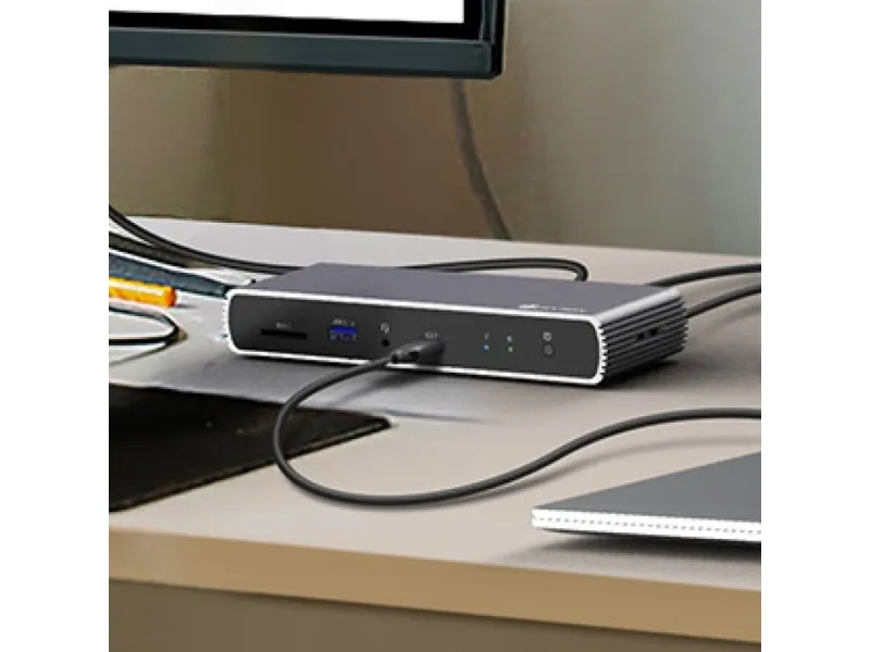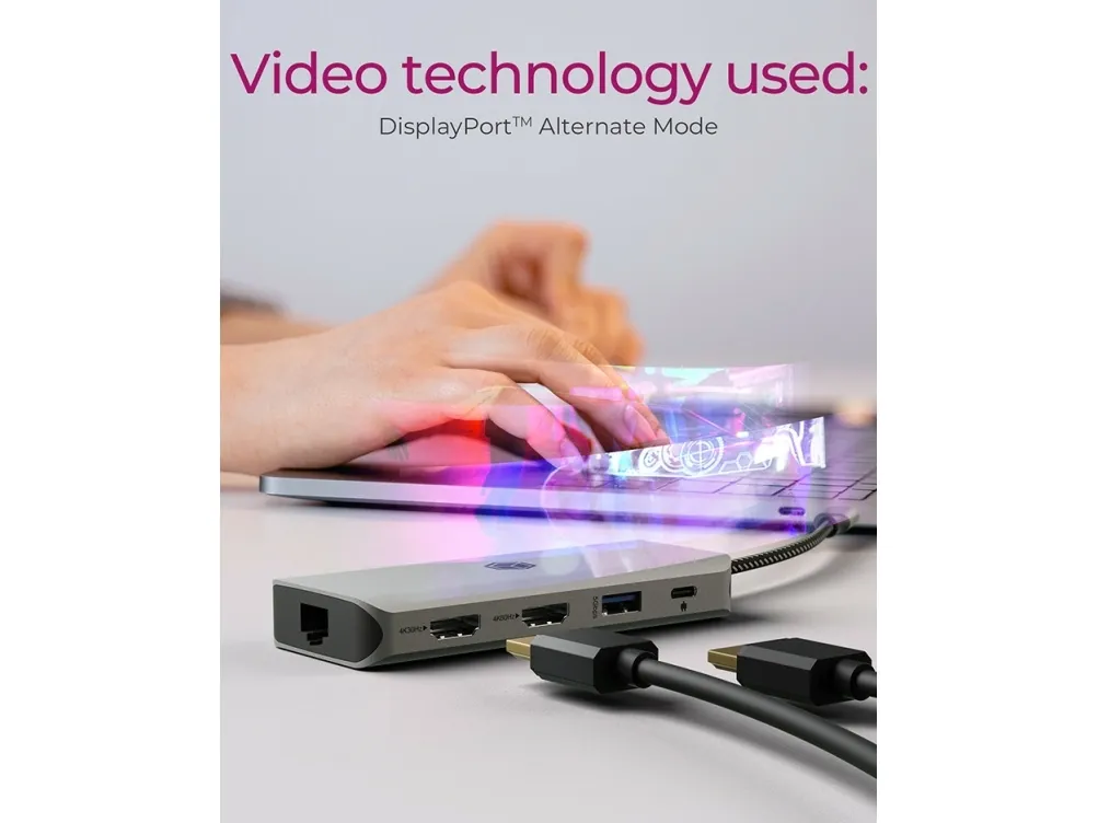 The RaidSonic ICY BOX IB-DK4012-CPD docking station is a comprehensive solution for expanding your device's connectivity. Designed to meet the needs of a dynamic workstation, it features an integrated USB-C cable and offers a variety of ports including USB 3.2 Gen 1, USB 2.0, and HDMI, along with Ethernet for network connections. This device supports high-resolution displays up to 3840 x 2160 at 60 Hz, making it suitable for professional and entertainment purposes. With USB-C Power Delivery up to 100 W, it can charge your devices while keeping your workspace clutter-free. The docking station is built with both aluminum and plastic, ensuring durability while maintaining a lightweight design for easy portability. Its compliance with DisplayPort 1.2 and 1.4 standards, along with advanced features like Display Stream Compression (DSC) and multi-stream transport (MST), ensures a high-quality video experience across multiple displays. Whether for work or play, the ICY BOX IB-DK4012-CPD is an essential tool for enhancing your productivity and multimedia experience.
