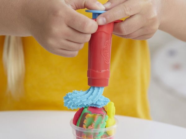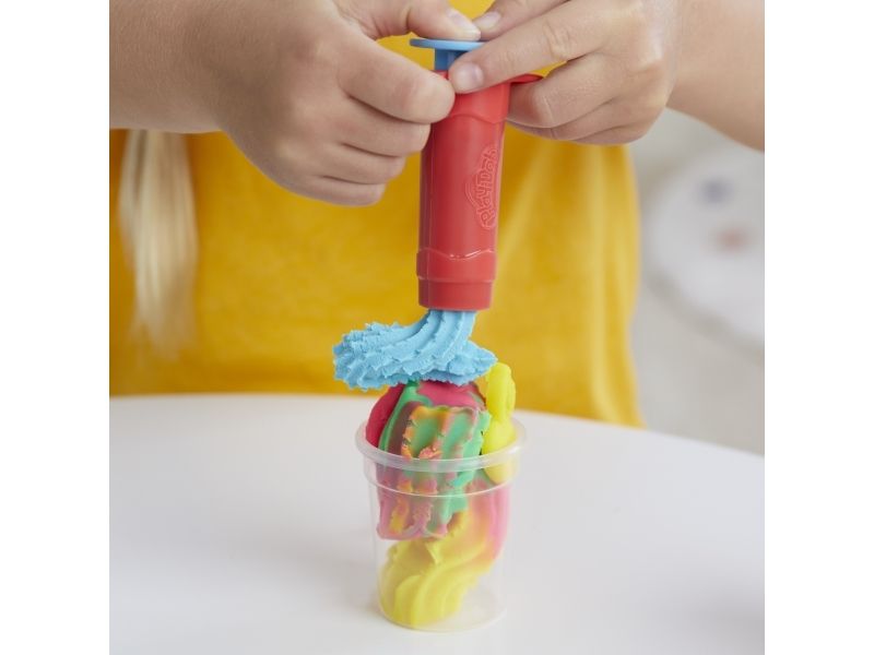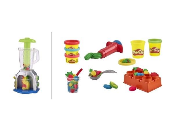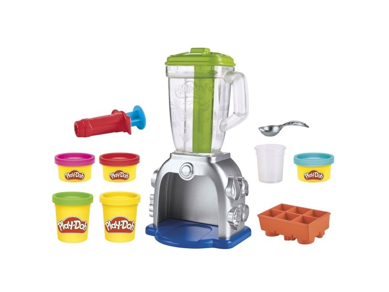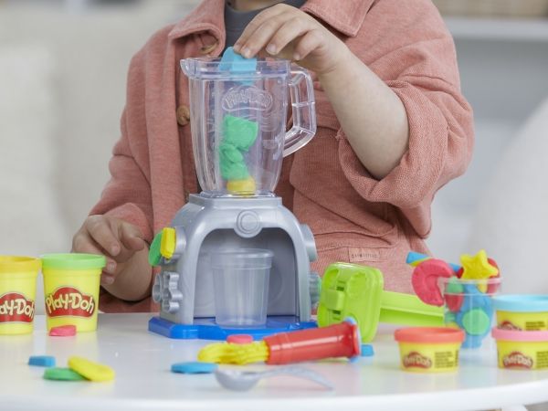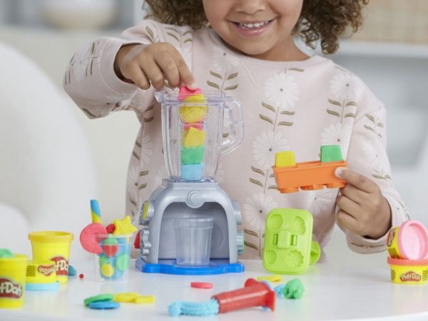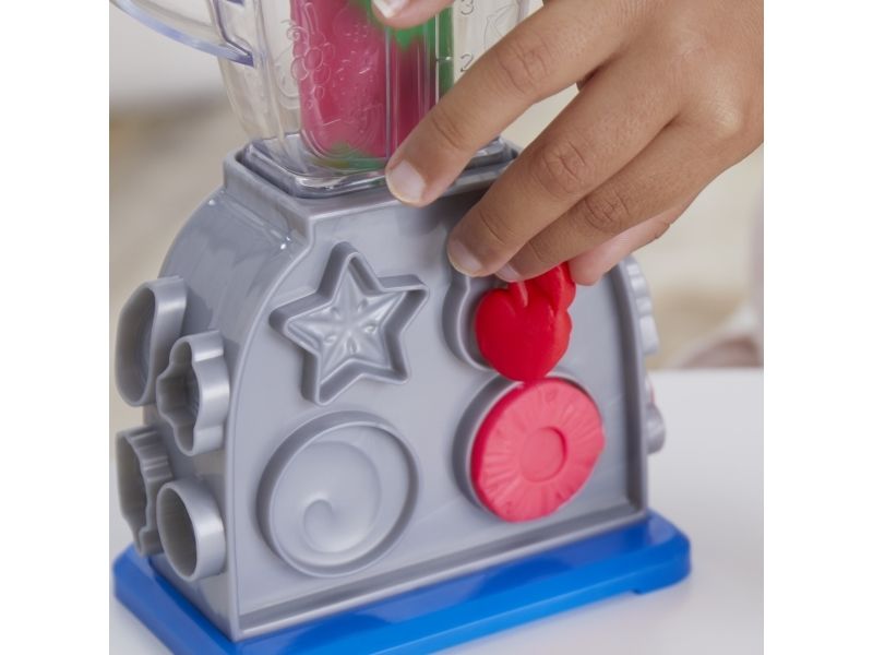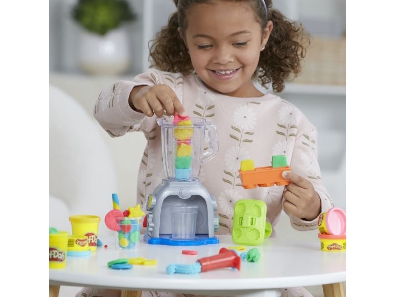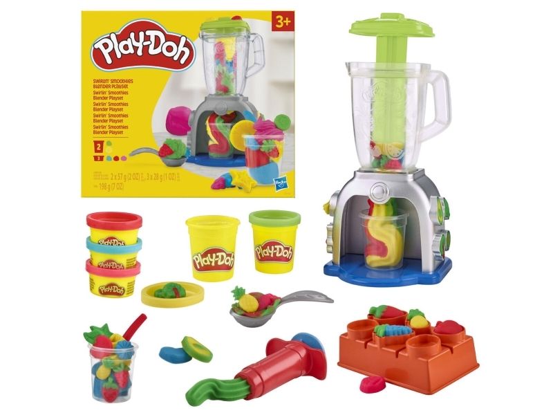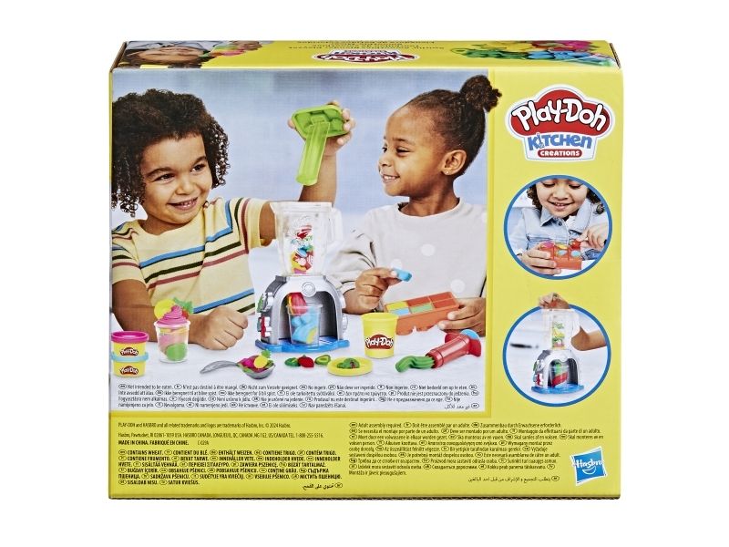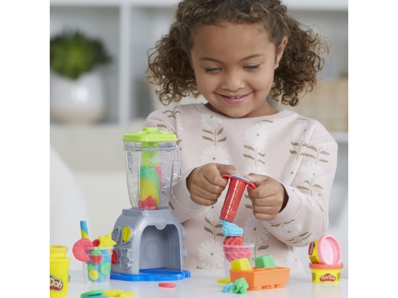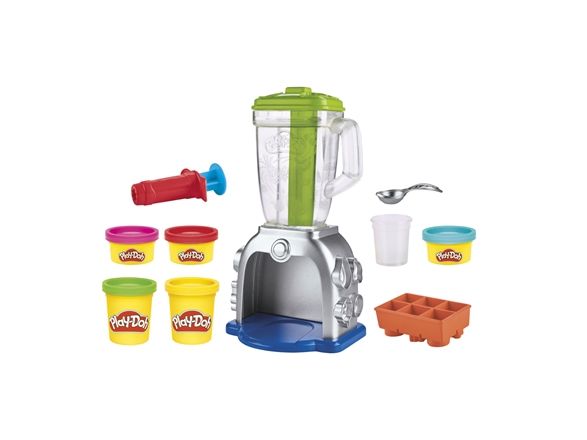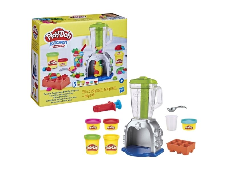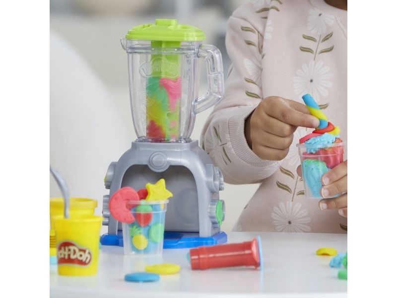 Släpp loss fantasin med Play-Doh Swirlin' Smoothies Blender-leksetet! Med matleksetet kan barn från 3 år skapa frukt och grönsaker av Play-Doh, stoppa dem i mixern och trycka genom dem för att skapa jättefärgglada låtsassmoothies! Och det finns inga gränser när det är dags att garnera dem! Rosa vispad Play-Doh-grädde? Varför inte? Gula låtsasjordgubbar? Så klart! Blå fantasibroccoli? Javisst! Play-Doh-set som Swirlin' Smoothies Blender-leksetet är suveräna kreativa leksaker för barn från 3 år. Hasbro, Play-Doh och alla tillhörande produkter är varumärken som tillhör Hasbro.