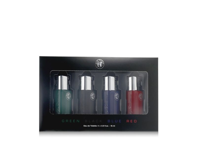 Alfa Romeo presentset för män grönt svart blått rött Eau De Toilette spray - 4 x 15 ml
