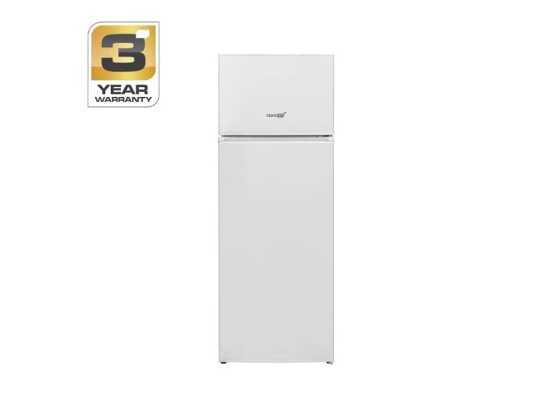 Brand- Standart. Model- RFD144EW. Height- 143 cm. Width- 55 cm. Depth- 55 cm. Weight- 37 kg. Colour- White. Refrigerator type- Freezer in the upper part. Energy Efficiency Class- E. Annual energy consumption- 176 kWh. Total refrigerator capacity- 204 l. Noise level- 40 dB. Automatic defrost- No. Cooling system in the refrigerator- Static. Changeable door direction- Yes. Screen- No. Freezing capacity, kg / 24h- 2. Type of lighting fixture- LED. Thermostat- Yes. Thermostat type- Electronic. Safe time in case of power failure- 8 h. Control- Mechanical. Mandatory warranty- 24 mo.