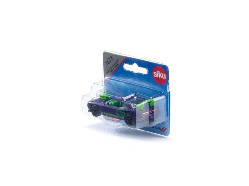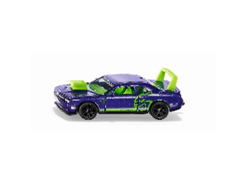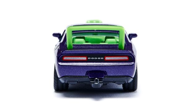 Detailed toy model of a Dodge Challenger. Robust and stable design thanks to metal body, rubberized tires, doors that can be opened, printed headlights and taillights, trailer hitch for combining with trailer models from other siku seriesr. Long-lasting fun thanks to countless possible combinations within the siku game world. Material: metal/plastic, dimensions: 8.5 x 3.6 x 2.8 cm.