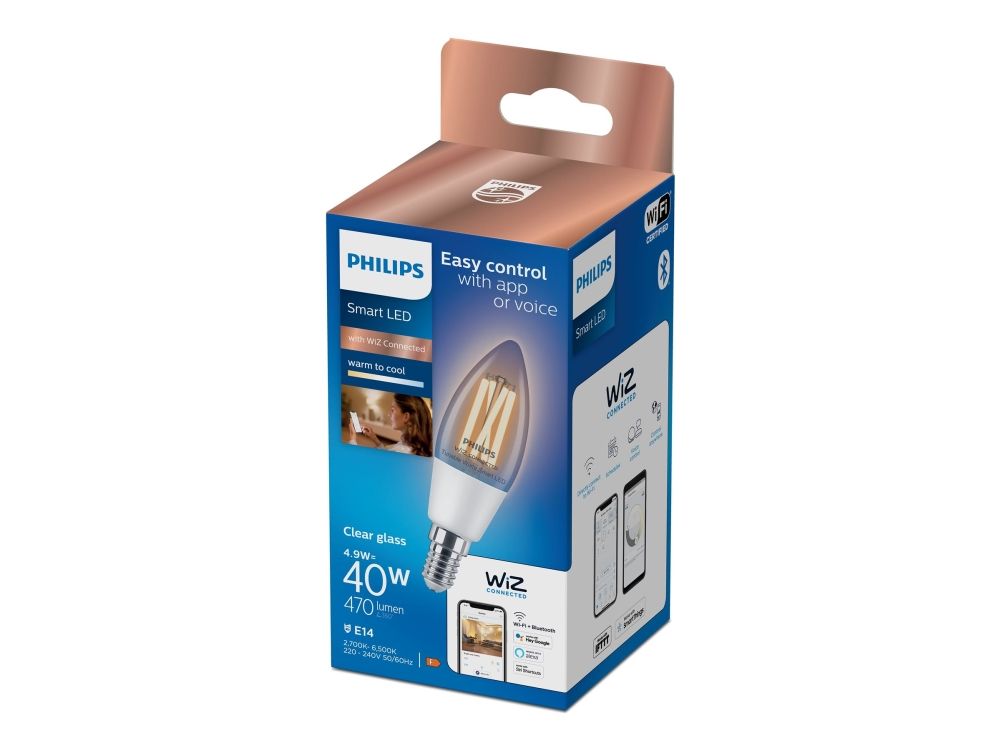 Philips Smart - LED-glödlampa med filament - form: C35 - klar finish - E14 - 4.9 W (motsvarande 40 W) - klass F - tonbar vit - 2700-6500 K
