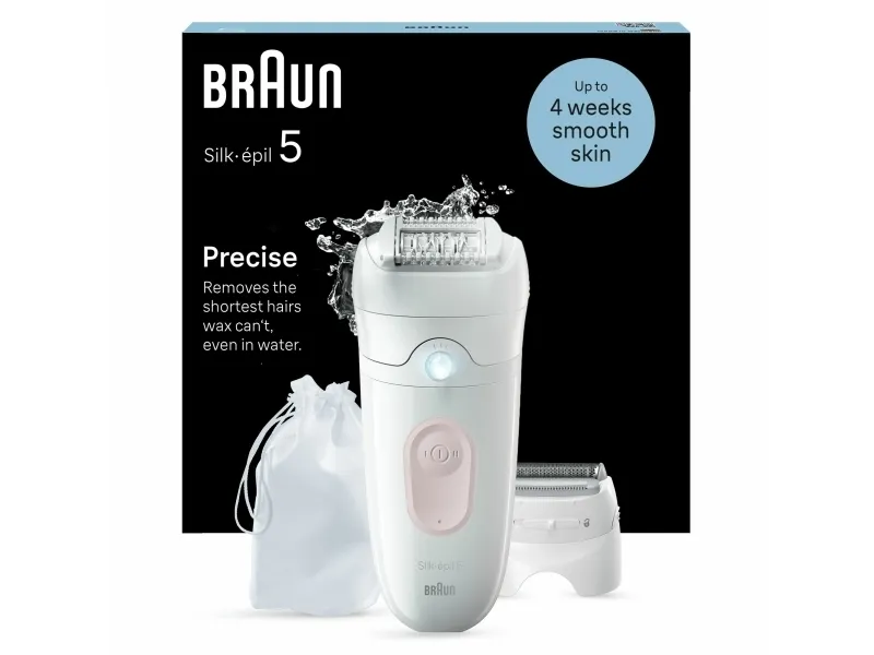 Braun Silk-épil 5 5-030. Product colour: Pink, White, Number of tweezers: 28 tweezers, Tweezers technology: MicroGrip. Power source: Battery, Battery type: Built-in battery, Battery technology: Lithium-Ion (Li-Ion). Country of origin: Germany