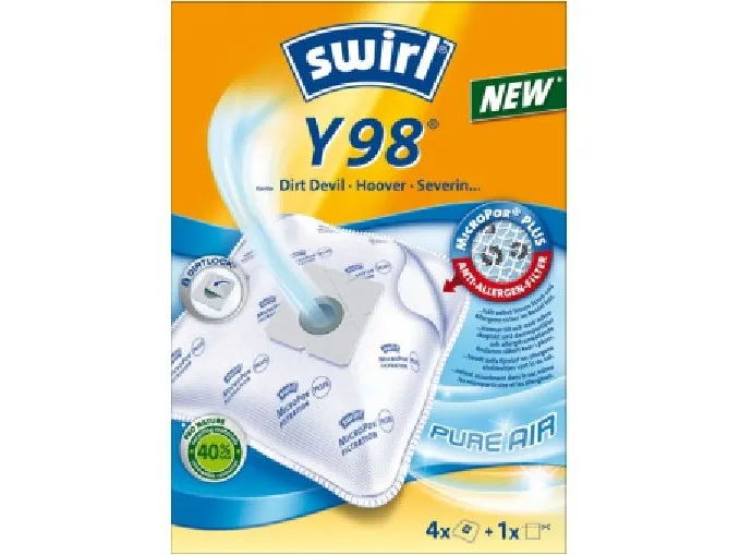 Swirl Y 98. Product type: Dust bag, Product colour: White, Compatibility: Dirt Devil, Hoover, Severin. Number of dust bags: 4 pc(s)