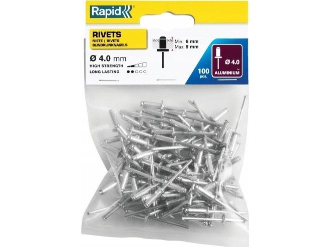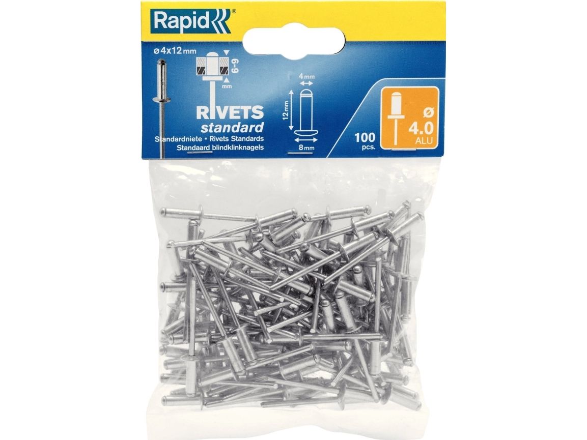 Rapid blindnitar standard, 4,0 x 12 mm, i aluminium - klämområde: 6 - 9 mm, passar för Rapid blindnitetänger - 1 st (5000379)