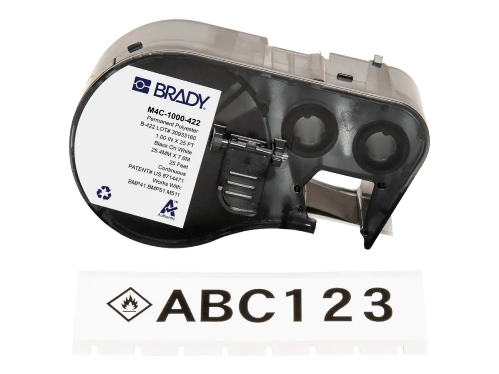 Brady ToughBond Series - Polyester - blank - permanent akrylhäftning - 101,6 mikron - svart på vitt - Rulle (2,54 cm x 7,62 m) 1 kassett(er) label in cartridge with ribbon - för Brady BMP53