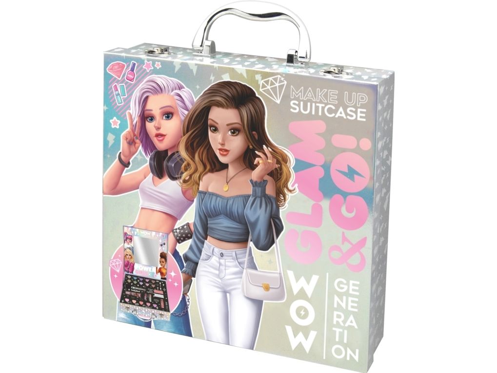 Upptäck WOW® Generation Make-Up Suitcase! Den perfekta följeslagaren för alla små stjärnor som älskar att skapa sin egen stil. Med Glam & Go! kan ditt barn utforska sin kreativitet och ha kul med smink och accessoarer. Den smarta storleken 26 x 26 cm gör den lätt att ta med överallt. Låt fantasin flöda och skapa magiska stunder!