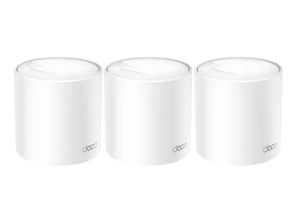 Deco X50 features higher WiFi speeds, larger device capacity, and nearly no lag with broader HE160 channel bandwidth.TP-Link AX3000 Whole Home Mesh WiFi 6 System, 3-Pack. Product colour: White, Antenna type: Internal, Transmit power: CE: <20 dBm (2.4 GHz) <23 dBm (5 GHz) FCC: <30 dBm (2.4 GHz) <30 dBm (5 GHz). Wi-Fi band: Dual-band (2.4 GHz / 5 GHz), Top Wi-Fi standard: Wi-Fi 6 (802.11ax), Wi-Fi standards: 802.11a, 802.11b, 802.11g, Wi-Fi 4 (802.11n), Wi-Fi 5 (802.11ac), Wi-Fi 6 (802.11ax). Processor frequency: 1 GHz, Firewall security: SPI, Parental control features: Custom profiles, Time controls, Weekly/monthly reports. AC adapter output voltage: 12 V, AC adapter output current: 1.5 A. Compliance certificates: CE, RoHS