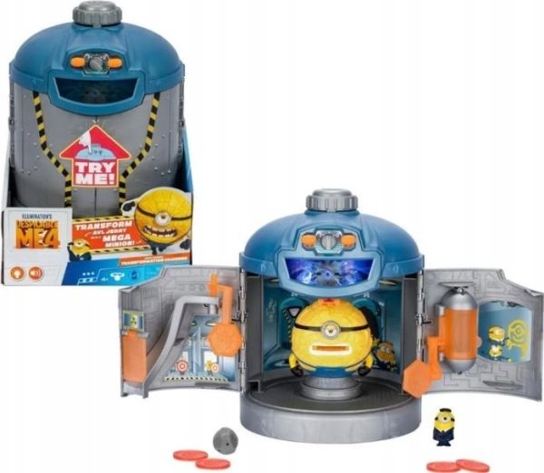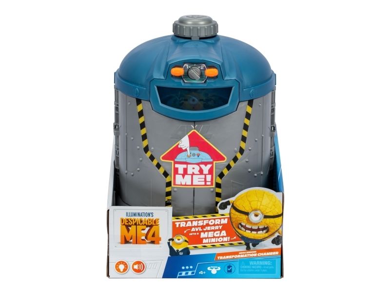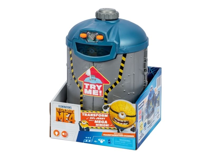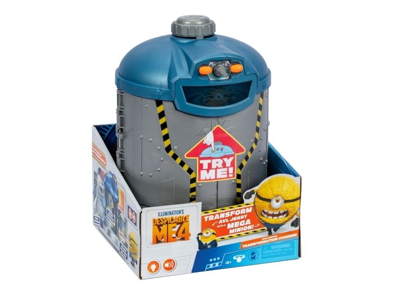 DESPICABLE ME 4, Mega Minions Transformation Chamber Förvandla AVL Jerry till Mega Minion Jerry! Kammaren kan öppnas för att förvandlas till ett AVL-träningscenter. Batteridriven med ljus och ljud!
