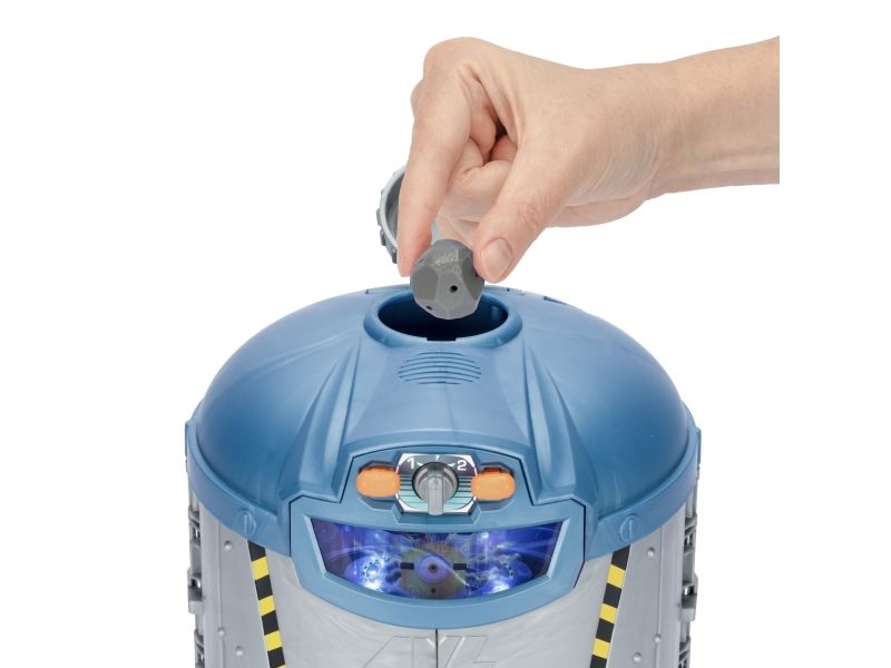 Nu kan ditt barn återskapa en av de mest minnesvärda scenerna från filmen Dumma mig 4 med Mega Minions-omvandlingskammaren. Med det här fantastiska leksakssetet kan barnen förvandla Jerry till en Mega Minion! För in den 5,8 cm stora AVL Jerry-figuren i toppen av kammaren med stenen. Slå på kammaren genom att vrida ratten till ”Full kraft”, aktivera sedan kammaren genom att dra i handtaget och öppna kammaren för att avslöja Mega Minion Jerry! Mega Jerry är 10 cm hög. Mega Minion Jerry är exklusiv för detta specifika leksaksset och kan skjuta diskar ur munnen! Kammaren öppnas upp och förvandlas till ett AVL-träningscenter med en rad roliga actionfunktioner. Få AVL Jerry att fly genom överraskningsluckan. Se upp för fallande stenar när de rullar ner i schaktet! Skjut ut diskar ur Mega Minion Jerrys mun för att träffa målen. Detta fantastiska transformerande leksaksset är batteridrivet och fyllt med ljus och ljud som kommer att glädja alla! Innehåller två figurer, sex tillbehör och tre AAA-batterier. Setets funktioner och tillbehör är enkla att aktivera och kommer garanterat att ge upphov till massor av skratt och skoj!