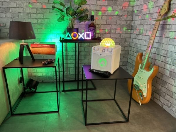 The Disco Block 410 is a powerful lightweight Bluetooth Speaker that you can take anywhere. You can turn any place into a party room, with the built-in disco ball and battery that lasts up to 4 hours. The maximum power of 50 watts is enough to fill a large room. You can play music via bluetooth, USB or MicroSD. Together with the included microphone, you can, for example, have a Karaoke Party, give a presentation, read a story or perform.