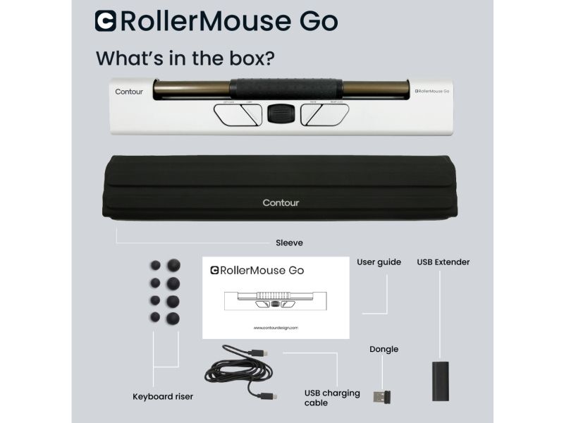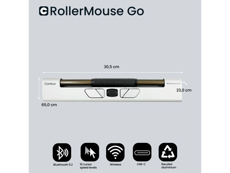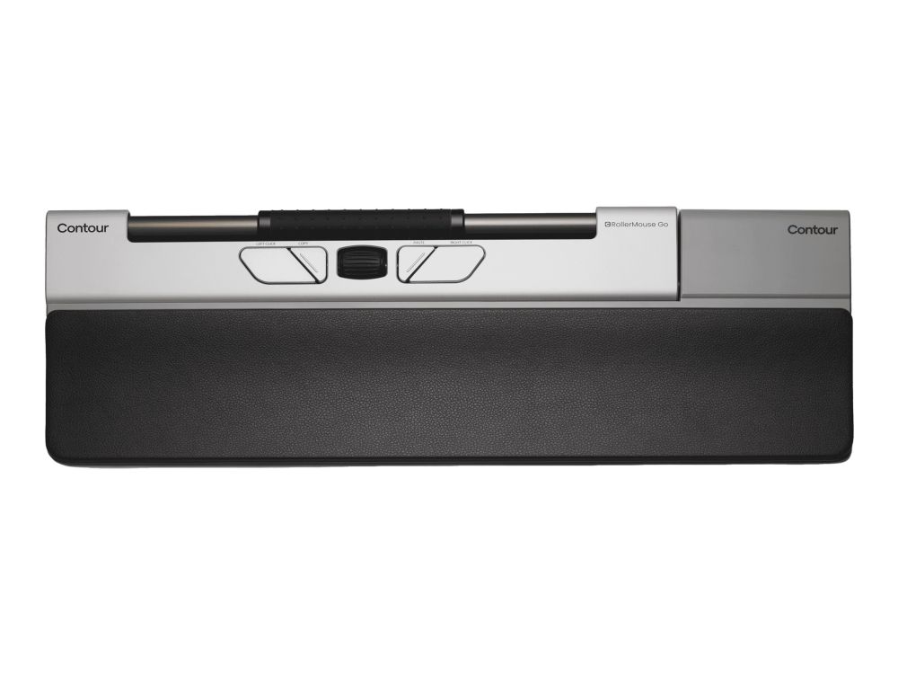 RollerMouse Go är en kompakt och trådlös version av Contours välkända centrerade mus. Genom att använda rullstången varierar du automatiskt din arbetsställning genom att använda både höger och vänster hand, och undviker de rörelser som är förknippade med användningen av en klassisk enhandsmus. Detta minskar risken för karpaltunnelsyndrom. De fem programmerbara knapparna och rullstången med inbyggd klickfunktion bidrar till att förbättra både ergonomi och välbefinnande Med RollerMouse Go Dock förvandlas den kompakta RollerMouse Go till en centrerad mus med full tangentbordsbredd och handledsstöd.
