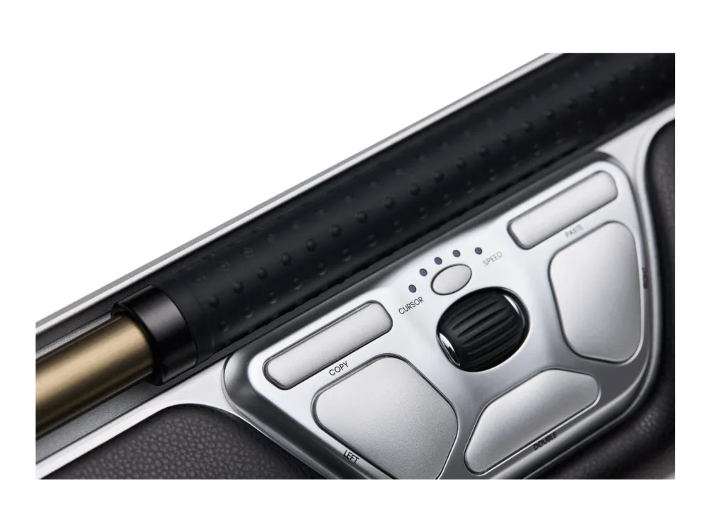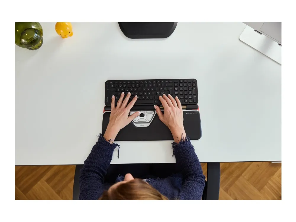 RollerMouse Red Plus är en förstklassig ergonomisk mus i aluminium med centruminriktning, bred räfflad rullstång och scrollhjul för bättre kontroll. RollerMouse Red Plus är anpassad för alla de funktioner du kan använda på en dator i dagsläget och för alla skärmstorlekar. Rullstången är placerad framför din kropp, vilket säkerställer musarbete med minimal sträckning och den centrerade arbetsställningen skyddar mot rygg-, nack- och axelvärk under hela dagen. Det breda handledsstödet av veganläder och memoryskum har en antibakteriell yta med hög tålighet mot desinfektioner för optimal hygien. De inbyggda kopiera/klistra in-knapparna gör det enkelt att snabbt överföra text eller bilder mellan program och om du har andra genvägar som du ofta använder kan knapparna ställas in på dessa.