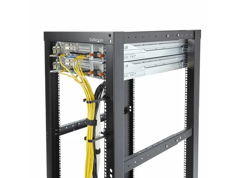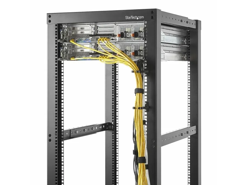 StarTech.com 5-pack 1U Vertical Cable Management D-Ring Hooks är ett viktigt tillbehör för alla serverrum och datacenter. Dessa kabelhanteringskrokar är utformade för att passa 19" serverrack och skåp och hjälper till att upprätthålla en ren och organiserad miljö genom att leda och säkra kablar vertikalt. De är tillverkade av slitstarkt stål och är byggda för att hålla länge och effektivt hantera kablar i nätverksrack. Att de uppfyller EIA RS-310-D-standarderna säkerställer att de är lämpliga för ett brett spektrum av installationer. Dessa kabelstyrningsringar är en praktisk lösning på utmaningar med kabelhantering.