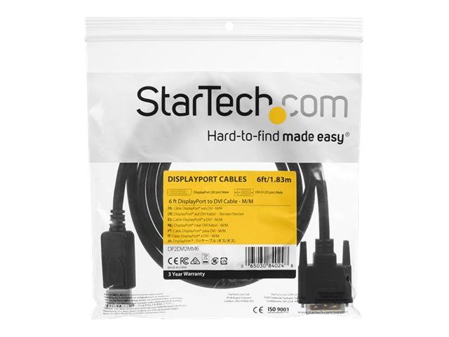 StarTech 1,8 m DisplayPort till DVI-kabel - 1080p video - DisplayPort till DVI-kabeladapter - DP till DVI-D-adapter Single Link - DP till DVI-skärmkabel - DP-anslutning med låsning - Adapterkabel - DVI-D (hane) till DisplayPort (hane) - 1.8 m - svart
