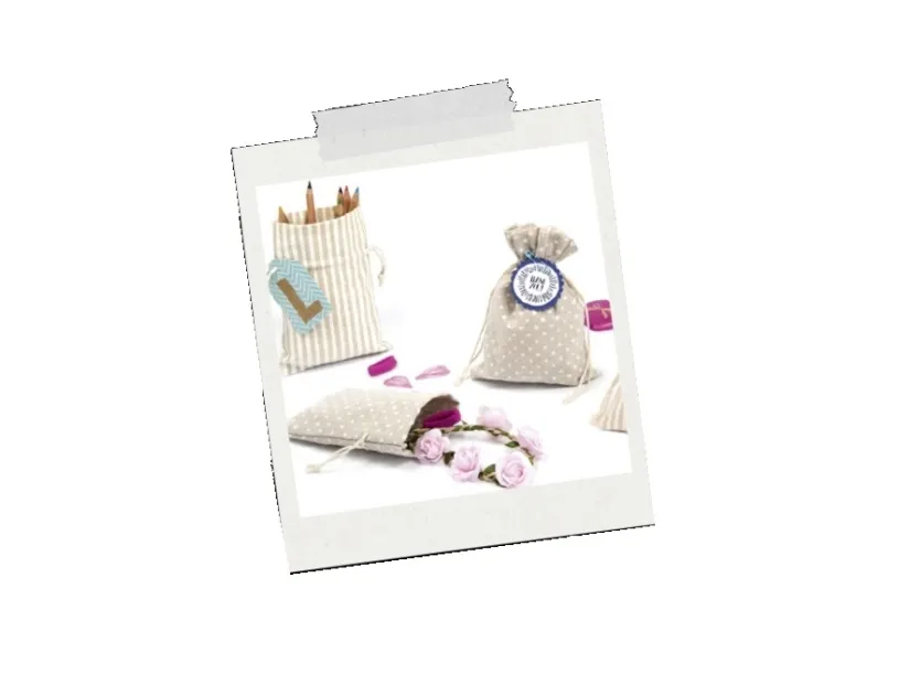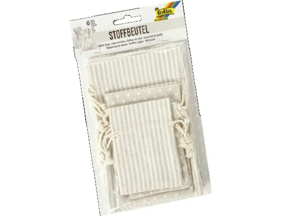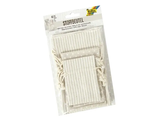 6 bags in cotton/polyester. Perfect storage solution for little things or for presenting gifts.Folia 64102. Product type: Gift wrap bag, Product colour: Beige, White, Surface coloration: Pattern. Number of products included: 6 pc(s)