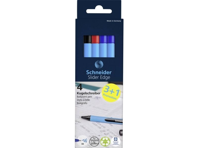 Schneider Schreibgeräte kulspetspenna Slider Edge XB 4-pack kartonetui, 3+1 kampanj 152271 kulpenna 4 st