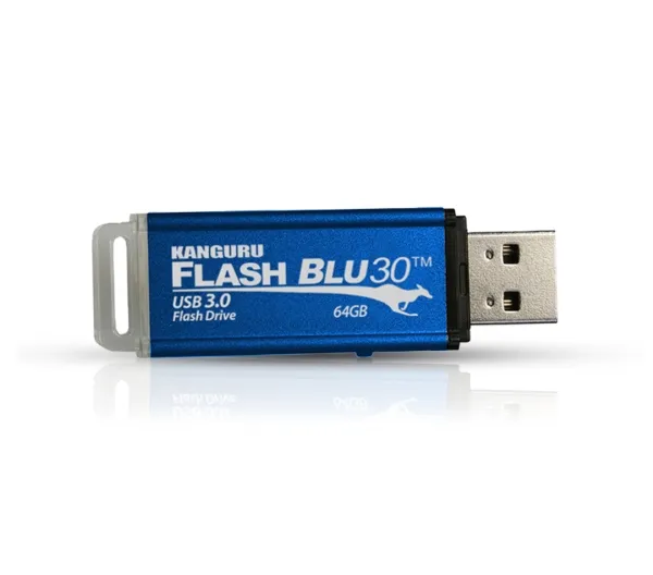 The Kanguru FlashBlu30 USB3.0 flash drive with physical write protect switch combines cost-effective data storage and convenience with superspeed data mobility. This high-performance USB3.0 makes the Kanguru FlashBlu30 one of the fastest drives on the market with data transfer read speeds of up to 145MB per second and write speeds of up to 45MB per second. The convenient physical write protect switch enables the user to quickly switch back and forth between read only and read/write modes to protect data from being accidentally overwritten or erased.