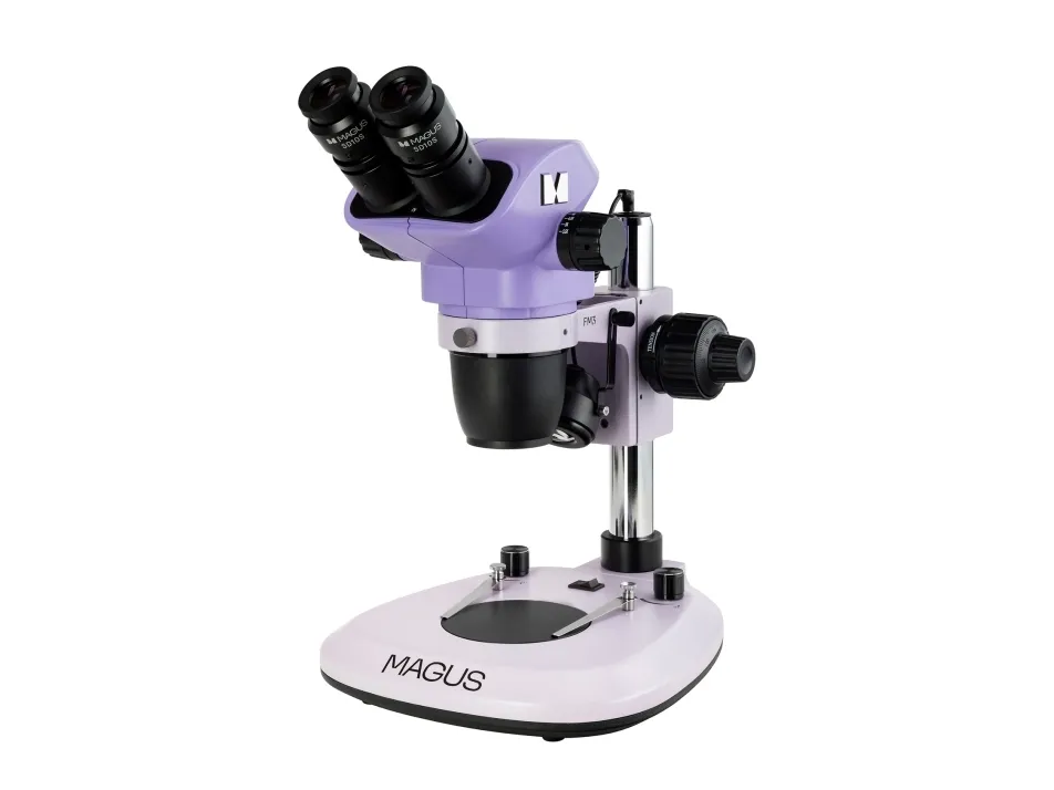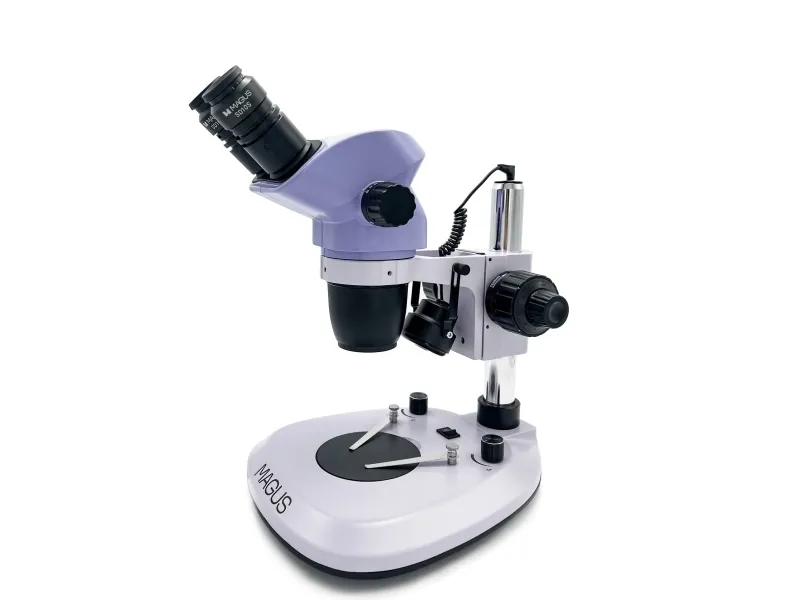 MAGUS Stereo 8B is a binocular stereomicroscope with a rotating head. With its help, you can work on three-dimensional samples: The microscope forms a three-dimensional image with a high depth of field and transmits an authentic image of the object. This makes it convenient to carry out the necessary manipulations on the object. The Greenough microscope with independent optical channels has a 15° stereoscopic angle, and its working area ranges from 105mm (basic configuration) to 177mm (optional). The basic methods of working on the device in transmitted and reflected light (brightfield) can be supplemented by the darkfield method and simple polarization with accessories.