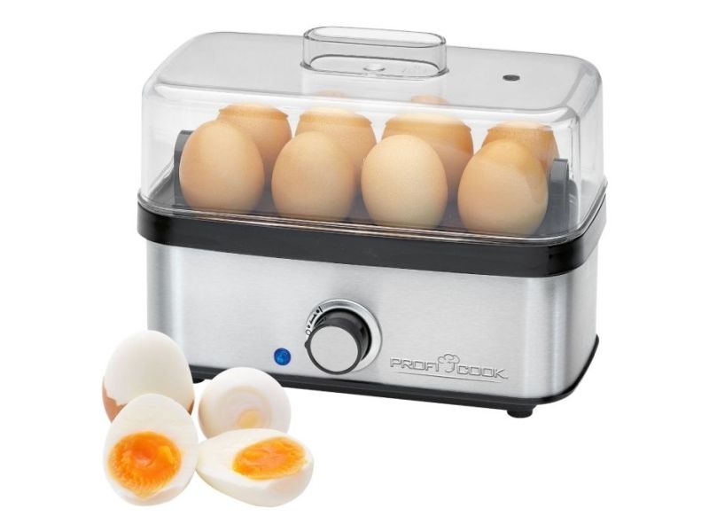PROFI COOK äggkokare PC-EK 1275, svart / silver, 400 Watt upp till 8 ägg, omelett-/pochningsfunktion, hölje i rostfritt stål, - 1 st (501275)