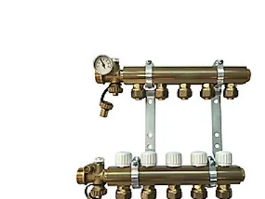 3/4'' komplet fordelersystem incl. 20 mm PEX fittings, med forindstilling og 2 stk. endestykker. 1'' tilslutning. Med nyt forbedret beslag for nem isolering. 9 kredse.