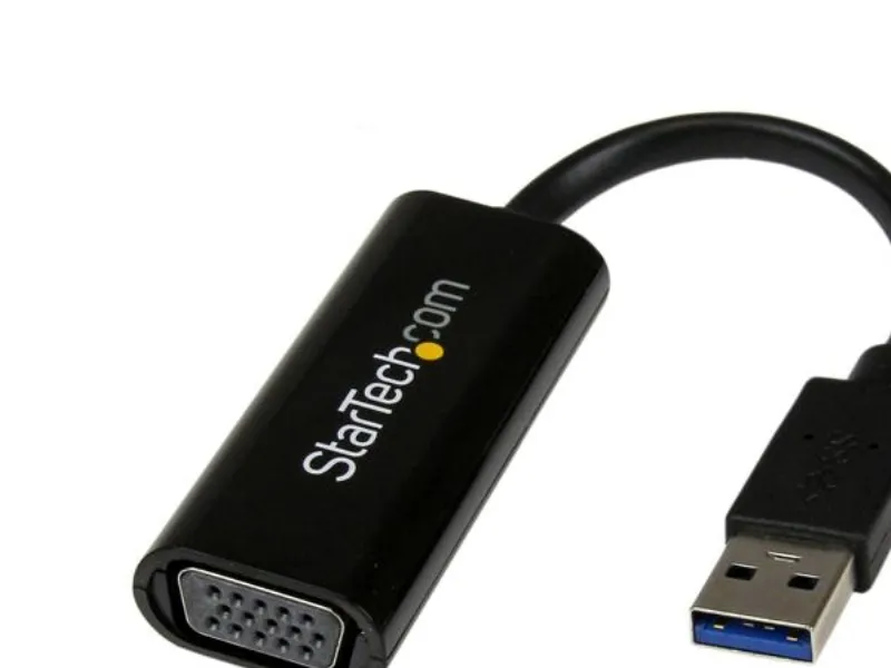 Denna ultraportabla USB till VGA-adapter har en liten och lätt design för att spara plats vid resor och får enkelt plats i datorväskan.