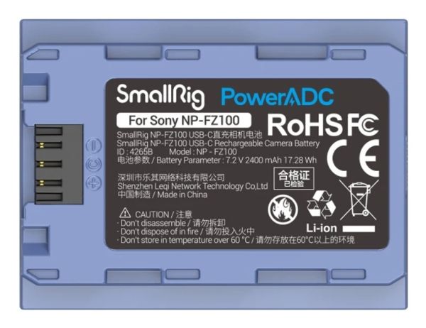 SmallRig 4265 fotobatteri, laddning via USB-C NP-FZ100